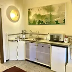 Chladnička, trouba a kuchyňské nádobí jsou k dispozici pro vlastní stravování.
